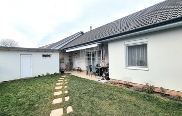 A kertben önálló 7 nm-es tárolóház épült, a 17 nm-es terasz motoros napellenzővel árnyékolható.