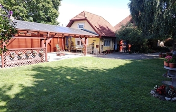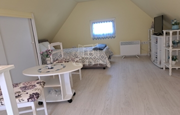 A vendégház 45 nm alapterületű alsó szinten szoba, előszoba, teakonyha, fürdőszoba, elosztású. az emeleten egy tágas galériás szoba.
