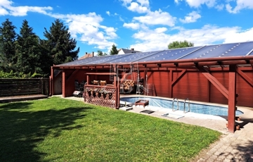 ÁLOMOTTHON SZIGETSZENTMÁRTONON 30-AS TÉGLAFALAZATTAL BETON FÖDÉMMEL 10 CM HOMLOKZAT SZIGETELÉSSEL, VENDÉGHÁZZAL, FEDETT MEDENCÉVEL!