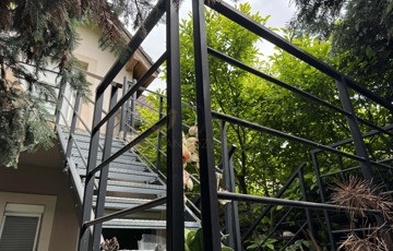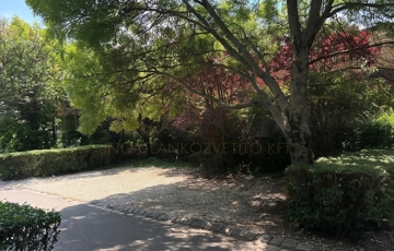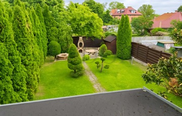 Az ingatlanhoz tartozik egy teljesen leválasztott, privát telekterület (300 m²), amelyet kizárólag a tulajdonosok használhatnak. A telken belül kialakított fedett kocsibeálló két autó számára, az ingatlan előtt pedig további négy autó parkolására van lehetőség.