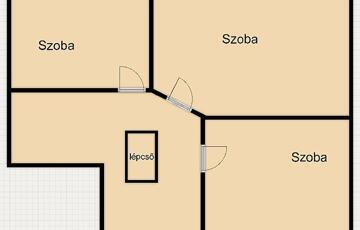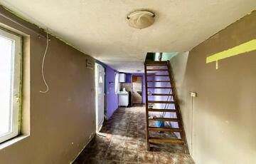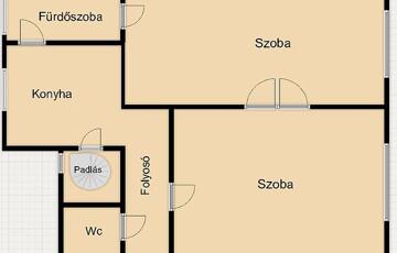 A földszinten található két szoba, konyha, fürdőszoba, külön WC, valamint padlásfeljáró. A helyiségek laminált padlóval és járólappal burkoltak.