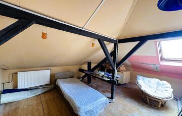 A tetőtérben három különnyíló szoba kapott helyet, a fűtés itt is kialakításra került, a padlóburkolat fa parketta.