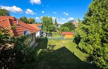 A 601 m²-es telken fekvő házhoz saját, zöld kert, fedett terasz és pince is tartozik.