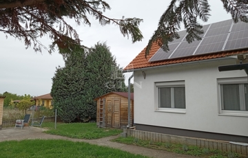 Zamárdi állandóan lakott részén, családi házas, csendes és nyugodt környezetben (Rétföldi utcában) eladó egy összesen 900 nm területű telken megépült, összközműves, önálló helyrajzi számon nyilvántartott lakóház. A 900-as telken két egymástól teljesen szeparált, minden tekintetben (közművek, hrsz.) elkülönült lakóház áll. Ez az épület a telek belső részén áll, egy közlekedő nyélen át közelíthető meg, amely miatt az utcáról nem látható, intim fekvésű az ingatlan. Az épület egy tehermentes, 85 nm + 24 nm terasz területű, egy lakószintes, tégla szerkezetű, (15cm) dryvit szigeteléssel ellátott, cserépfedésű családi ház. Egy nyugati tájolású, nagy méretű, fedett terasz felől jutunk be a lakótérbe, amely belépő, közlekedő, tágas, gépesített konyha-nappali, minőségi anyagokkal burkolt két fürdőszoba (egy kád-wc és egy zuhany-wc), valamint három hálószoba helyiségekből áll. Az épület fűtése egy 10,5 kilowattos napelem-rendszerrel támogatott, elektromos fali panelekkel történik, továbbá egy a nappaliban elhelyezett hűtő-fűtő klíma is segíti a megfelelő hőmérséklet kialakítását. Az áramellátás 3×32 amper. A használati melegvizet villanybojler biztosítja. A napelemes kiépítésnek köszönhetően, átlagos áramfelhasználás mellett a rendszer nullszaldós. A műanyag nyílászárók redőnyözöttek. A lakótér felett tágas padlástér található, amely hatalmas tárolókapacitást biztosít. A padlástér északi oldalán egy fedett, kis terasz került kialakításra, amelyről rálátás nyílik a Balatonra. Ez az épület 2024-ben került végső befejezésre. A házhoz 450 nm telekhányad tartozik, amely területen elhelyezésre került még egy 12 nm területű kerti tároló is. A parkolás több autó számára is kényelmesen megoldott a ház melletti, térkövezett és védett területen, amely egy kis, füves pihenőkerthez csatlakozik. További információkért hívjon vagy a megadott elérhetőségeken keressen!