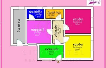 Kiváló statikai állapotban lévő, korszerűsítést, műszaki és esztétikai felújítást igénylő kockaházat kínálunk eladásra Dunaföldváron. A csendes Duna-parti kisváros centrumától néhány percnyire álló lakóház 1968-ban épült, rendkívül masszív, száraz falai 121 nm-es lakóteret zárnak közre. Az épület középpontjában elhelyezkedő tágas nappalihoz két világos, utcafronti hálószoba, előszoba, főzőfülke, veranda, fürdőszoba és WC kapcsolódik. Az eredetileg tárolási célokra használt kamra minimális költséggel lakószobává alakítható, jelentős mértékben megnövelve a jelenlegi hasznos alapterületet. Az összközműves ház fűtéséről jelenleg hagyományos kályhák gondoskodnak, de az épületbe vezetett gázcsonk a gázfűtés kiépítésére is lehetőséget kínál. Az 1.794 nm-es telek akár háztáji gazdálkodásra is alkalmas lehet. Iskola, óvoda, bolt, buszmegálló néhány perc alatt elérhető.