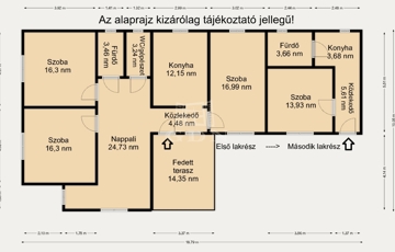 Az épületet kondenzációs gázcirkó padlófűtéssel, 2 lakrész, 3 + 1 szoba, lakrészenként konyha. nappali, lakrészenként fürdőszoba, valamint egy 14,35 nm-es terasz jellemzi.