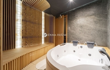 Alagsor: gépészet, háztartási helyiség, vendégszoba, valamint egy külön kialakított relaxációs tér szaunával, jakuzzival, sófallal.