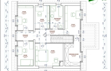 Az emeleten, ami br. 110 m2, 5 hálószoba, gardrób szoba és egy fürdő lett kialakítva.