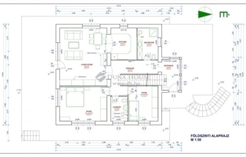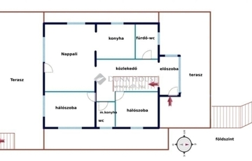 A 116 m2-es földszinten előszoba, 2 fürdő-wc, 2 hálószoba és a hatalmas nappali-konyha terasz kapcsolattal található. A nappalival kapcsolatos terasz közel 50 m2-es.