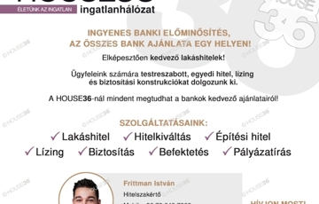 Forduljon hozzám bizalommal amennyiben felkeltette érdeklődését ez a remek lehetőség, ha eladó ingatlana van, illetve ha hitelre van szüksége! Szolgáltatásaink kereső ügyfeleink részére ingyenesek!