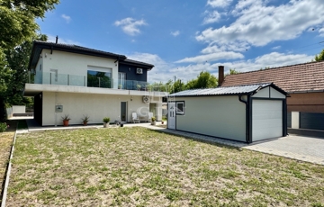 A KÉTSZINTES előkertes ingatlan két utcára nyíló 700 m2-es telken épült fel. A kertben egy autó számára található a külön álló könnyűszerkezetes, árammal ellátott 28 m2-es garázs.