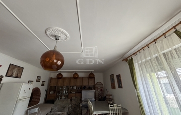 Előkertes, gáz-cirkó fűtéses, napelemes épület.