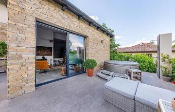 Budakalász kedvelt részén, csupán 15 perces sétára a HÉV megállótól helyezkedik el, így könnyen megközelíthető a város iskolái, óvodái, illetve üzletei egyaránt. A kilátás panorámás, továbbá a nyeles teleknek köszönhetően az intim szférából sincsen hiány. A ház és a kert gyönyörűen karbantartott, többek közt öntözőrendszer is kiépítésre került.