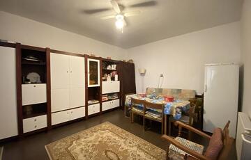 A házrész közepes állapotú, 1 plusz 3 fél szobából, újszerű konyhából egy felújított fürdőből áll.