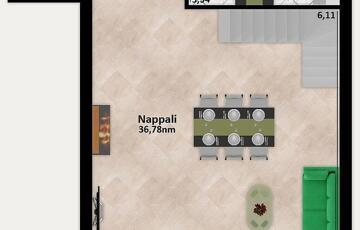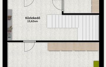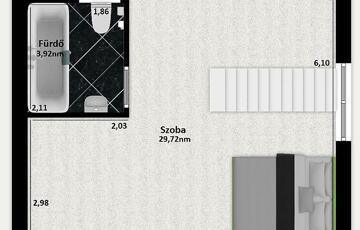 A tetőtérben egy szoba és egy fürdőszoba kapott helyet.
