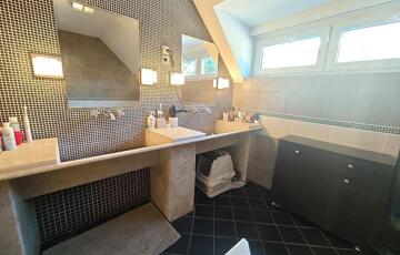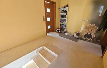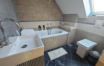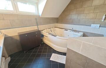 Az emeleten egy nagy szülői háló kapott helyett (ez régen 2 külön szoba volt), egy gyerek háló/dolgozó és egy kényelmes fürdőszoba.