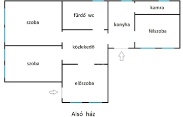 '60-as években épült, 99 nm-es, 2+1 félszobás, cirkó fűtéses, műanyag thermo ablakos, közepes állapotú.