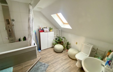 2002-ben épült, 136 nm-es, tetőtér beépítéses, amerikai konyhás nappali + 3 hálószobás, két fürdőszobás, cirkó fűtéses, klímás, műanyag thermo ablakos, külsőleg szigetelt, jó állapotú.