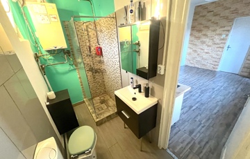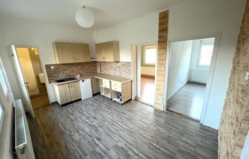 - A 2 szoba, konyha, előszoba laminált padlóval, a fürdő járólappal burkolt