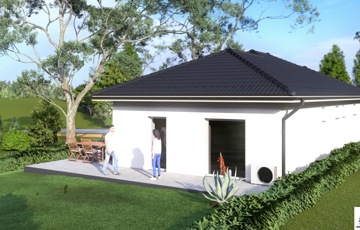 főfal: 30 cm tégla, 15 cm dryvit szigetelés, műanyag nyílászárók, fűtés: padlófűtés + hőszivattyú,