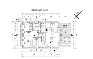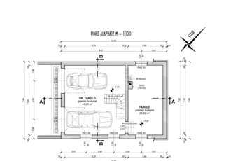 Garázs: kétállásos, házkapcsolatos (kb. 45 m²)