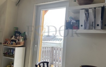 Az emeleti lakásban található egyedi, prémium gépekkel felszerelt konyhabútor a vételár részét képezi.