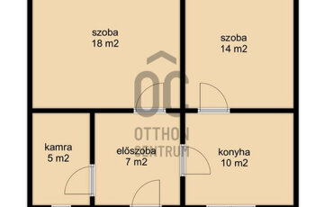 Elosztása két szoba, konyha, előszoba, kamra és egy napfényes terasz.