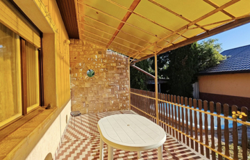 Konyha kerti rész is adott. Az udvar parkosított, térkövezett , kovácsolt vas kerítés utcafront felől. Minden közmű adott.