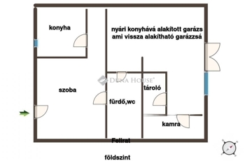 Garázs: jelenleg nyári konyha és tárolóként funkcionál, de bármikor újra garázzsá alakítható. A garázs és kis a lakás egy szinten van, így akár egybe is nyitható és otthoni vállalkozásnak is helyet tud adni.