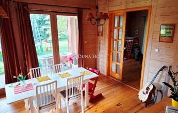 A földszinten egy tágas, világos nappali fogadja, ahol az egyedi cserépkályha melege igazi otthonos légkört teremt. A nappalihoz és a közösségi terekhez teraszok kapcsolódnak, melyek ideális helyszínei lehetnek a reggeli kávézásnak, a nyugodt pihenésnek vagy a baráti összejöveteleknek.
