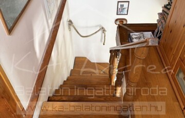 Az emeleti szinten két hálószoba és egy közlekedő található, amely ideális akár családi pihenőhelyként, akár hétvégi házként is. Az emelet lépcsőn közelíthető meg, ezért az ingatlan nem akadálymentes, ugyanakkor a lépcső kialakítása kényelmes és biztonságos használatot biztosít.