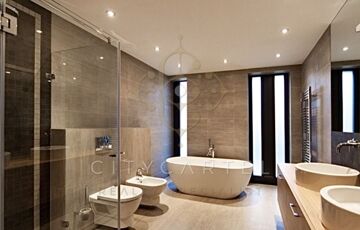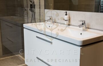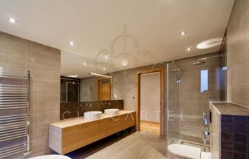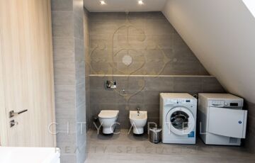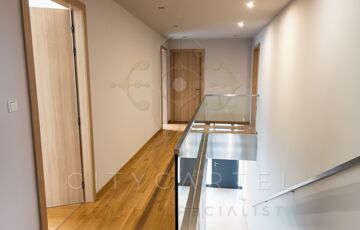 A házban 11 szoba, 4 fürdőszoba, valamint 2 garázs és további 6–8 autó számára parkolóhely áll rendelkezésre. A lakásokhoz összesen 200 m² terasz és erkély tartozik.