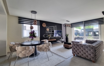 ● Nappali + 4 hálószoba (gardróbbal) + háztartási helyiség + garázs+ terasz.