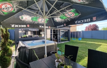 Energiahatékony ingatlan, saját 480m2 telekterület, kerti szaunaház, jakuzzi.
