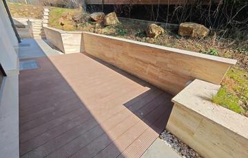 Az ingatlan egy 742 nm-es, kizárólagos használatú telken épült, ahol a nyugalom és a természet közelsége találkozik a modern műszaki megoldásokkal. Az építéskor külön figyelmet kaptak a természetes anyagok, így a kültérben mindenhol Travertin mészkő található.