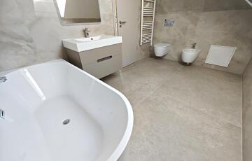 A háromszintes otthon építése során minőségi anyagok és korszerű technológiák kerültek beépítésre. A ház 30 cm-es Porotherm téglából készült, melyet 15 cm grafit hőszigetelés egészít ki, a födém pedig 20 cm vastag monolit vasbeton.