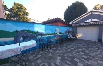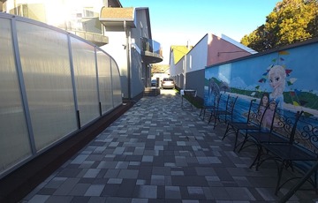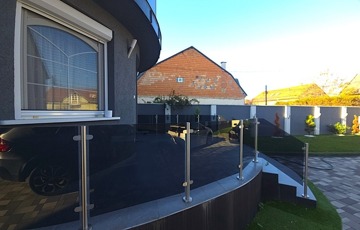 Viacolor burkolat az egész kertben, üvegkorlátok a teraszokon és erkélyeken.