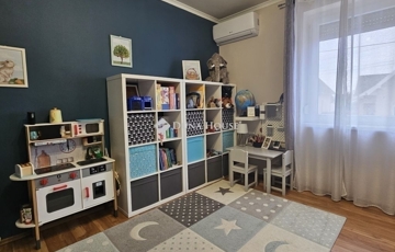 Eladó Máriagyűd egyik kedvelt, rendezett utcájában ez a gondosan karbantartott, 1996-ban épült családi ház, amelynek jelenlegi tulajdonosai az építéstől kezdve ugyanazok, így az ingatlan teljes előélete ismert. A ház Porotherm 38-as téglából épült, teljes körű homlokzati, lábazati és födémszigeteléssel rendelkezik. A beton födém lehetőséget biztosít a tetőtér beépítésére, így igény esetén a lakótér tovább bővíthető. Az ingatlan energiatakarékos megoldásokkal felszerelt: egy 5 kW-os napelemes rendszer működik rajta, amely még 8 évig szaldó elszámolásban marad, és akár 7,5 kW-ig bővíthető. A rendszer jelenleg fedezi a teljes villamosenergia-felhasználást. A fűtésről gázkazán és vegyes tüzelésű kazán gondoskodik, padlófűtéssel kiegészítve. A kellemes hőmérsékletet egész évben két inverteres klíma és egy hűtő-fűtő klíma biztosítja. A fűtési rendszer igény szerint hőszivattyúval is tovább fejleszthető. A 33 m²-es melléképületben egy 23 m²-es, szerelőaknás garázs, valamint egy 10 m²-es tároló és kazánház kapott helyet. A melléképület mögött betonozott udvarrész található, amely alkalmas medence kialakítására is. Az ingatlan korszerű, távfelügyeletes riasztórendszerrel felszerelt, amely a nyílászárókra és a garázsra is kiterjed, így a biztonság is megoldott. A ház ideális választás mindazok számára, akik egy jól karbantartott, energiatakarékos, bővíthető otthont keresnek nyugodt környezetben. Megtekintés és további információ miatt várom hívását.