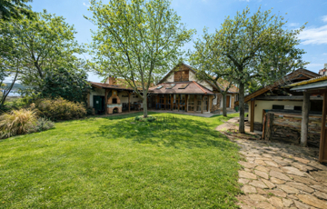 • A gondosan ápolt kertet dísznövények és fenyők teszik hangulatossá, az automata öntözőrendszer és az ásott kút pedig folyamatosan biztosítják a zöld környezet fenntartását.