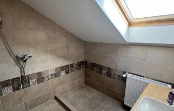 A tetőtérben jelen pillanatban két hálószoba, közlekedő és egy fürdőszoba található.