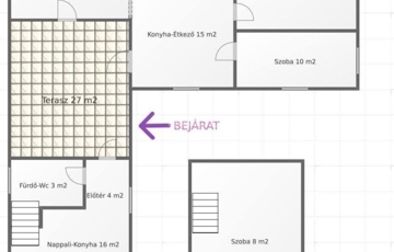 A ház alapterülete 62 nm, 2 és fél szoba, konyha, fürdőszoba, amelyhez egy 27 nm terasz is tartozik, ami egy 31 nm téliesített faházhoz kapcsolódik, ebben található szoba, konyha, nappalival és fürdőszoba, alatta 16 nm pince. A telek 2809 nm, aminek a hátulsó része gazdálkodásra is alkalmas. A ház fűtéséről gázkazán gondoskodik, így a téli hónapokban is kellemes a meleg.