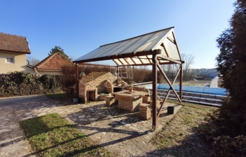A csendes környezetben található ingatlanból gyönyörű kilátás nyílik a kertre, ahol megpihenhet, lazíthat a medencében, de akár a kerti sütögetőt használva vendégeket is fogadhat.