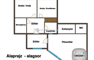 * Alsó szinten: pince/tároló + fogadótér, edzőterem, iroda