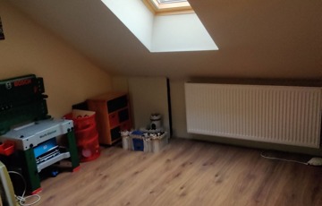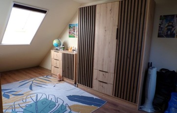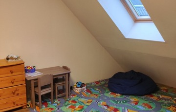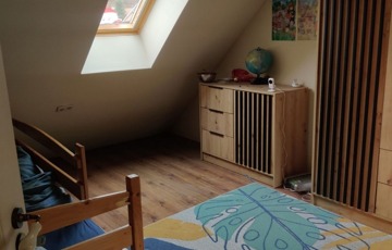 hálószoba és egy zuhanyzós fürdő található. A tetőtérben (kb. 40 m²) további két külön