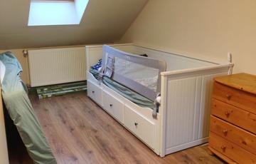 hálószoba és egy kézmosóval ellátott WC biztosítja a gyerekek vagy vendégek kényelmét.