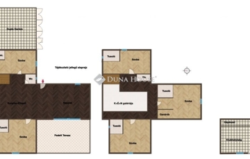 Prémium minőség nettó 267 nm-en!Családi házat kínálok megvételre Zalaszentgrót egyik csendes zsákutcájában. Az elvehetetlen panorámával rendelkező kettő szintes családi ház nappali+5 háloszobás, különlegessége a tökéletesen kialakított teraszán kívül, hogy minden szobához fürdőszoba tartozik, ezzel biztosítva, hogy egy nagyobb, több tagú család is kényelmesen el tudjon különülni egymástól, akár egy reggeli készülődés során, vagy egy fárasztó nap után, amikor mindenki privát szférára vágyik. Közösségi tere tágas, konyhai berendezése magas minőségű bútort és gépezetet kapott, ez is ugyanúgy mint a ház többi része még érintetlen, vadonatúj, a ház első lakóit várja!Elrendezése praktikus, a földszinten nappali+konyha+étkező, kettő hálószoba, az emeleten pedig további három hálószoba van. A 3521 nm-es telket a házból tudjuk megközelíteni, a konyha mellett elhelyezkedő terasz ajtón át. Műszaki tartalma értéket képvisel, mai kornak abszolút megfelelő, hiszen ez egy téglából épült cserépfedésű tetővel ellátott szigetelt ház, három rétegű nyílászárókkal, elektromos redőnnyel. Villamos hálózata 3X25 A, ezzel működtetve a hét beltéri egységet magába foglaló klímás hűtő- és fűtő rendszert, éjszakai árammal kiegészítve a maximális energiatakarékosság jegyében. Dupla garázs kívülről elérhető, ennek szerkezete panelből készült. Az udvarról elérhető egy külön helyiség, ahol a ház teljes gépészeti rendszere van, ezen felül egy élhető méretű helyiség akár családi összejövetelek, akár bármilyen más jellegű tevékenységnek helyéül szolgálhat. Nagyon ritka olyan ingatlant találni manapság, ami azonnal költözhető, gyönyörű, igényesen kivitelezett állapotú, csendes helyen levő, ám Zalaszentgrót központja percek alatt elérhető autóval. Befektetői szempontból is érdemes megvizsgálni a ház adottságait, hiszen apartmanként is minden igényt kielégítő, könnyen megtérülő hasznot generálhat tulajdonosának. Jogtiszta ingatlan, a vételár megfizetése után szinte azonnal birtokba vehető!Megtekintéshez az alábbi elérhetőségek valamelyikén tud velem időpontot egyeztetni. Várom megtisztelő hívását, akár hétvégén is!