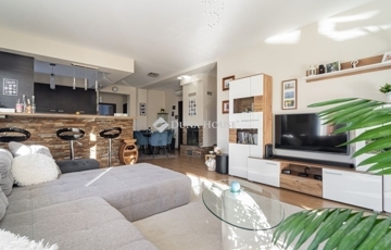 A világos nappali közvetlen kapcsolatban áll a tágas, 40 m²-es terasszal,