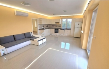 3 hálószoba és egy tágas, napsütötte amerikai konyhás nappali, 2 fürdőszoba és egy külön mellékhelyiség (az egyik háló saját fürdővel rendelkezik), Gépesített, modern konyhabútor és beépített gardrób az előszobában.