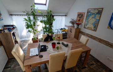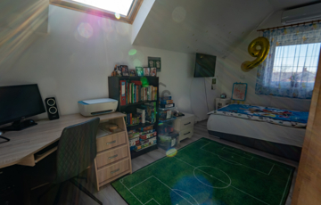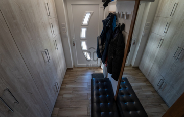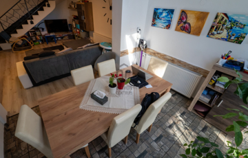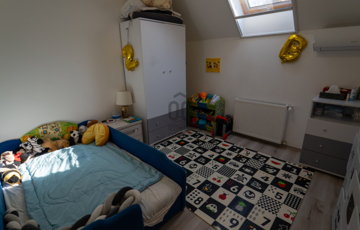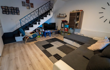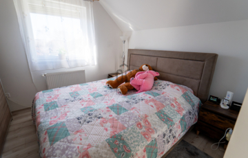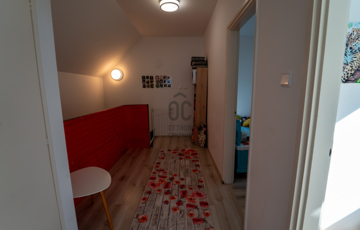 A 2005-ben épült, tégla falazatú, tetőteres családi ház tágas és jól átgondolt elrendezésű. A földszinten világos nappali–étkező–konyha tér fogad, külön fürdővel és WC-vel. Az emeleten három külön nyíló szoba és egy zuhanyzós fürdőszoba biztosít kényelmes életteret akár családnak, akár otthoni munkavégzéshez.