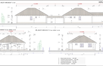 Az épület 30 cm-es Porotherm téglából készül, fa födémmel. A hőszigetelés 15 cm homlokzati EPS-ből, 10 cm lépésálló rétegből és 30 cm födémszigetelésből áll. A 7 légkamrás, háromrétegű üvegezésű nyílászárók kívül barna, belül fehér színben készülnek, elektromos alumínium redőnyökkel és szúnyoghálóval szerelve.